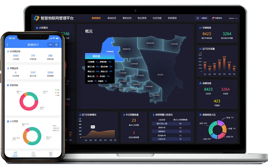 通過物聯(lián)網(wǎng)采集終端數(shù)據(jù),經(jīng)處理分析后將數(shù)據(jù)呈現(xiàn)在可視化大屏上、移動端設(shè)備上,實(shí)時(shí)感知并觀察各物聯(lián)設(shè)備的狀態(tài)及數(shù)據(jù)